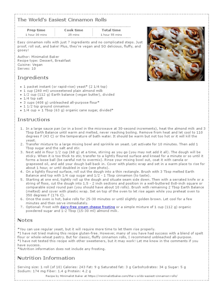 The world039s easiest vegan cinnamon rolls minimalist baker. You see weve practically been lovers since the 3rd grade when i discovered they were the one thing the lunch ladies at my school made from scratch that actually tasted like food. They were worth the wait.